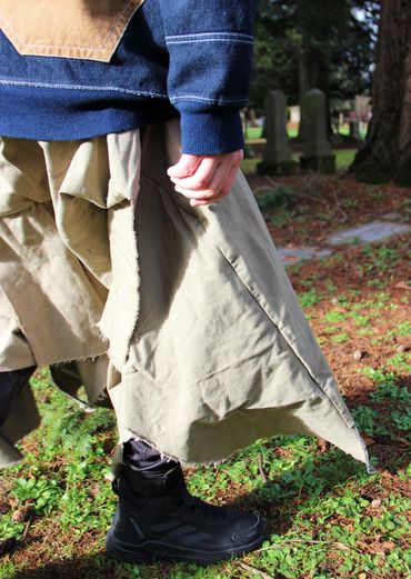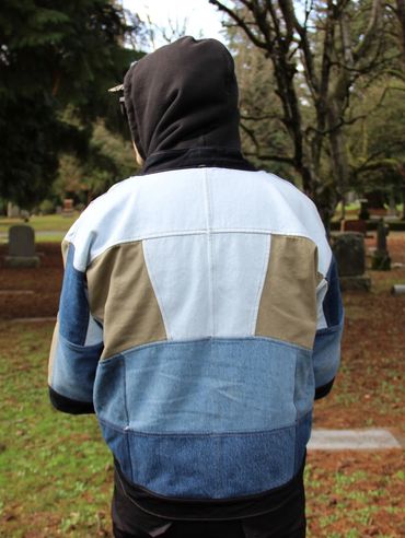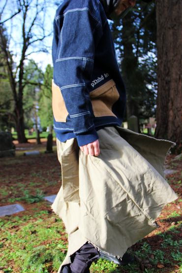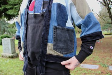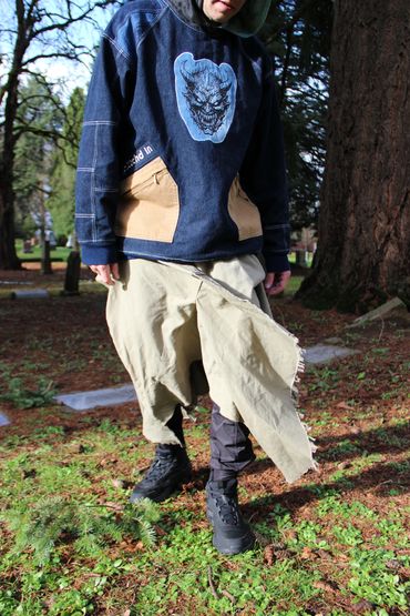 thrifted jeans, hoodies, sweatpants, curtains, and more are used to create pieces made with care and precision. 'slow fashion' is a term that can seem cringe at times, but that’s exactly what dead.endless is: 1 person creating the designs, drafting the patterns, and sewing the pieces. quality construction, gender inclusivity, and circularity are hallmarks of the dead.endless ethos.
